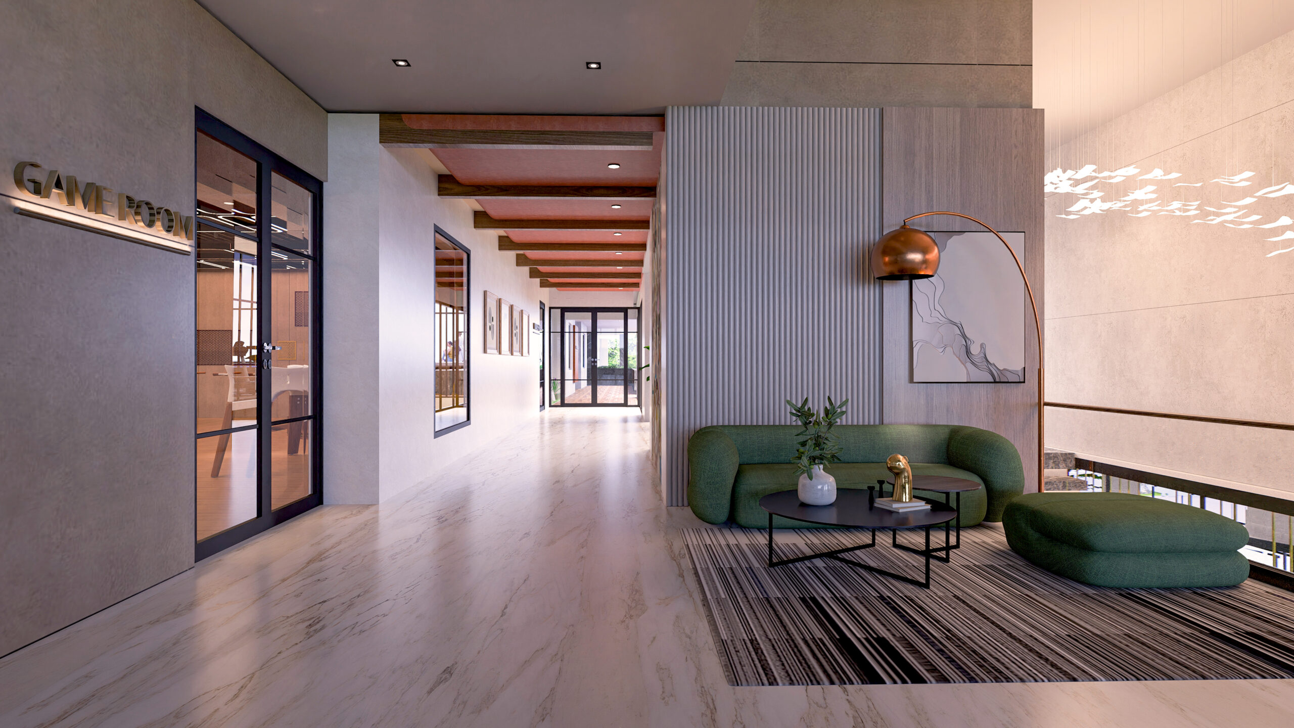 Elegant meeting rooms and co-working spaces offer environments for focus, collaboration, and connection, while a cozy creche provides a nurturing space for children. The clubhouse is completed by a luxurious banquet hall, designed for celebrations and shared moments.